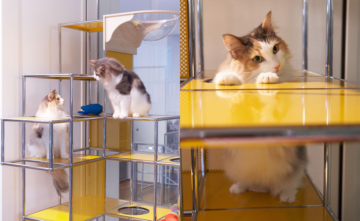 USMハラーのモジュール性を活かし、キャットタワーやペットベッド、遊んだり隠れたりといったペットの行動を促す空間、餌皿などの “生活用品” を隠すのではなく、インテリアの一部として美しく見せる工夫が満載。デザイン性と機能性を兼ね備えた、新しい暮らしのアイデアをご覧いただけます。