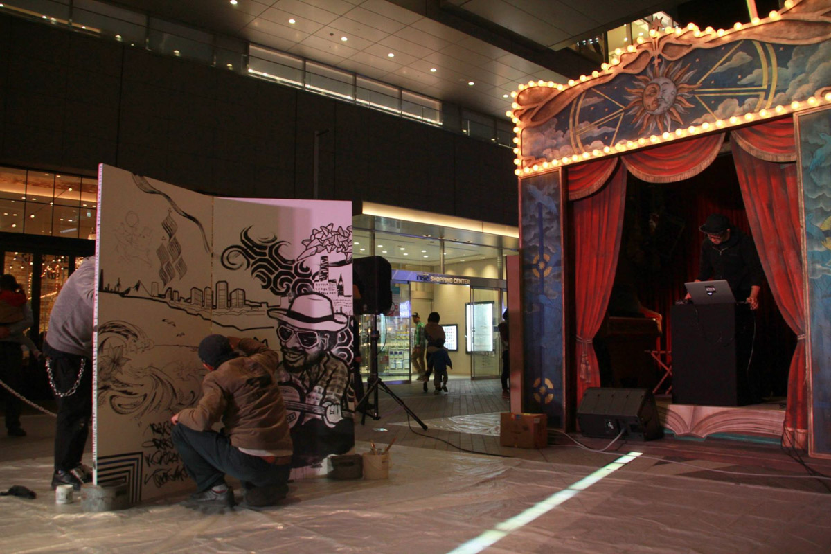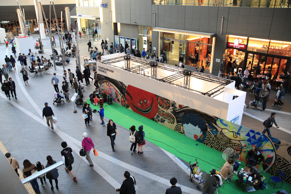 2012年から約5年にわたって開催された、街全体をギャラリーに変える芸術祭「二子玉川ビエンナーレ」。東急や高島屋などの企業と地域の人々が連携し「二子玉川ライズ」をはじめとする周辺の店舗や広場を会場に、展示会やワークショップ、ライブペイントなどが実施されました。そのスタートのきっかけとなったのも、ロハスキッズ・センター クローバーの取り組みでした。