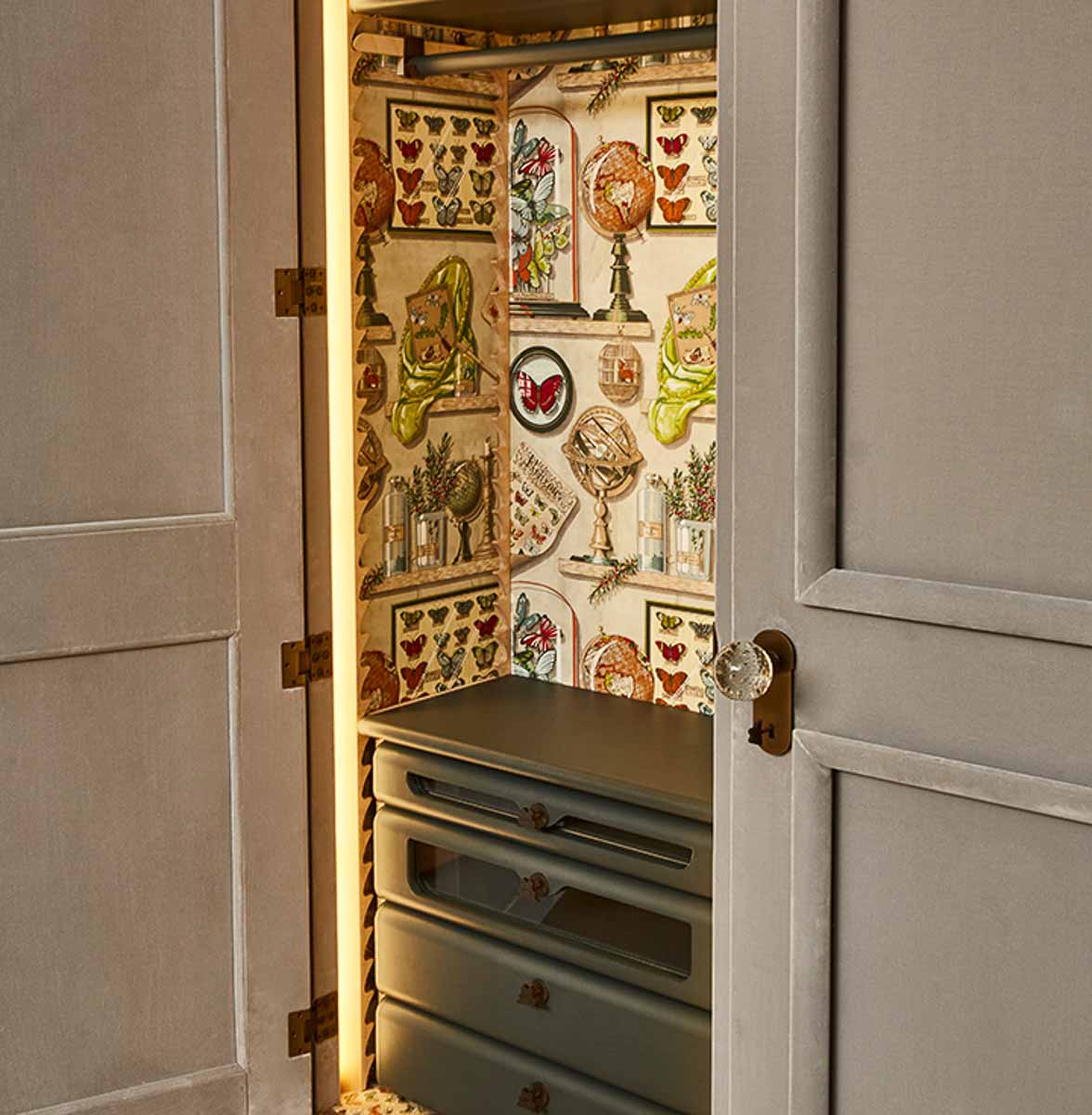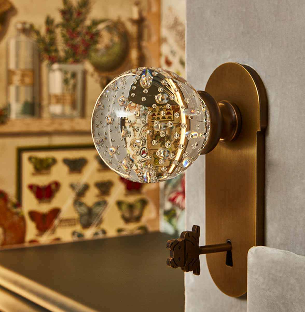 オーダーメイドのキャビネットに取り付けられたムラーノガラス製のハンドル。