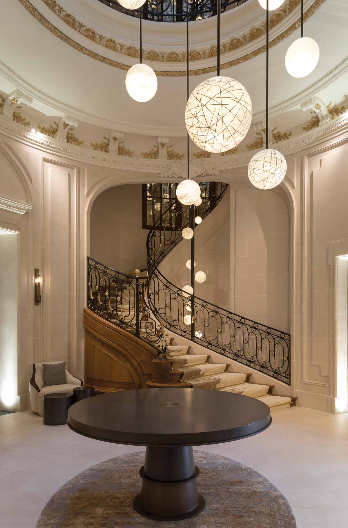 ロメオ:世界各地から選りすぐった木材。シルクやリネン、カシミアに、ブロンズやシルバーなどの金属を織り込んだマテリアル。ムラーノガラスや大理石、雪花石膏。そうした高級素材同士を組み合わせて、精緻なディテールへと造形していく。その贅沢な美しさは、見る人の心をとらえて離しません。