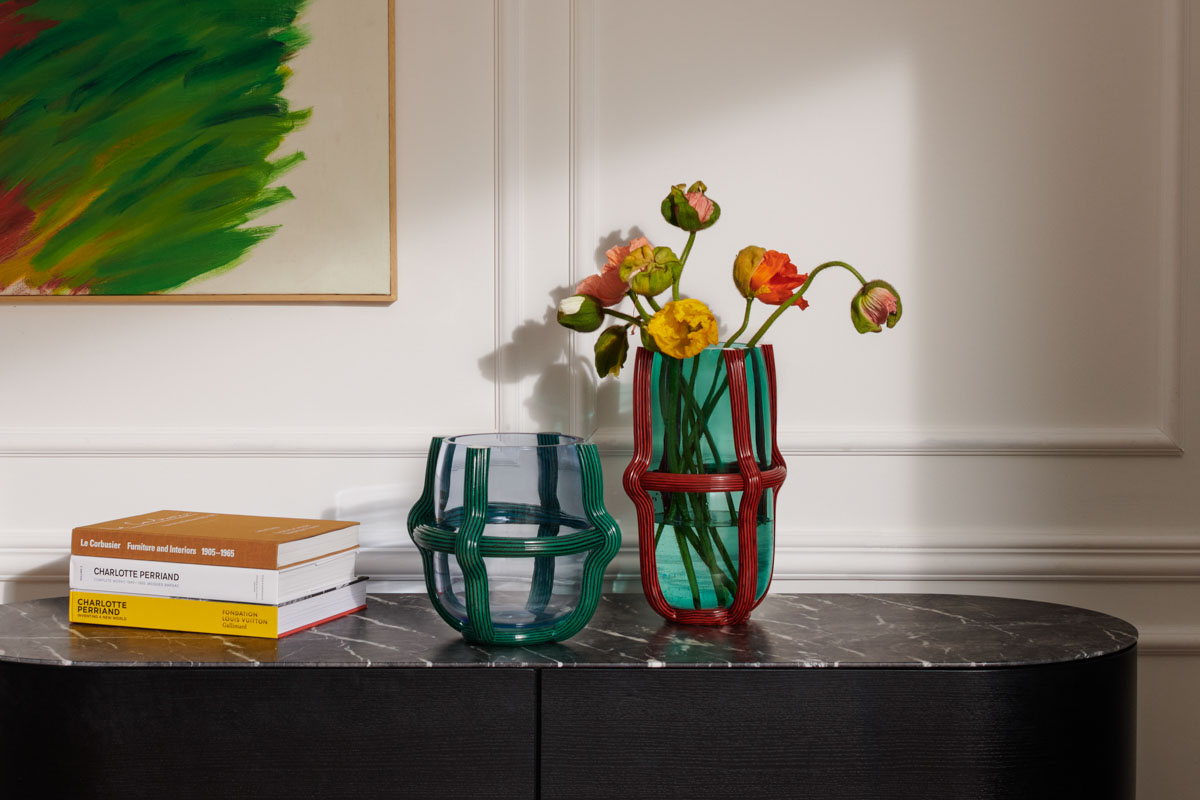 (右)パトリシア・ウルキオラがデザインを手掛けたフラワーベース「SESTIERE(セスティエーレ)」。日常に情緒を咲かせてくれる。(Photo: Paola Pansini)