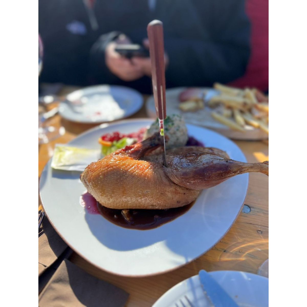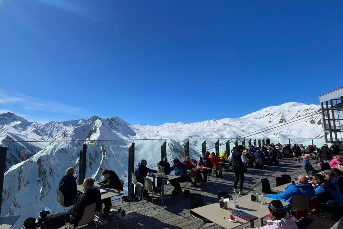 宅間理了(以下、宅間):景色のいいテラス席から埋まっていきますよね。日本のスキー場は雪が降り続いていることが多いけど、ヨーロッパはいつも晴れているイメージなので、外で過ごすのが気持ち良いのかな。