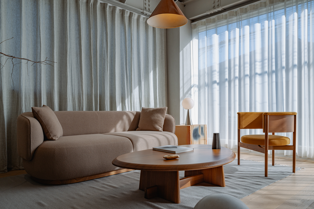 金子:最近で言うと、発売前から展示しているカリモクケースのソファでしょうか。麻布の高価格帯マンションのリノベーションプロジェクトのために開発したもので、しっかりとした木部の土台がありながら、コロンとかわいらしいフォルムが特徴です。